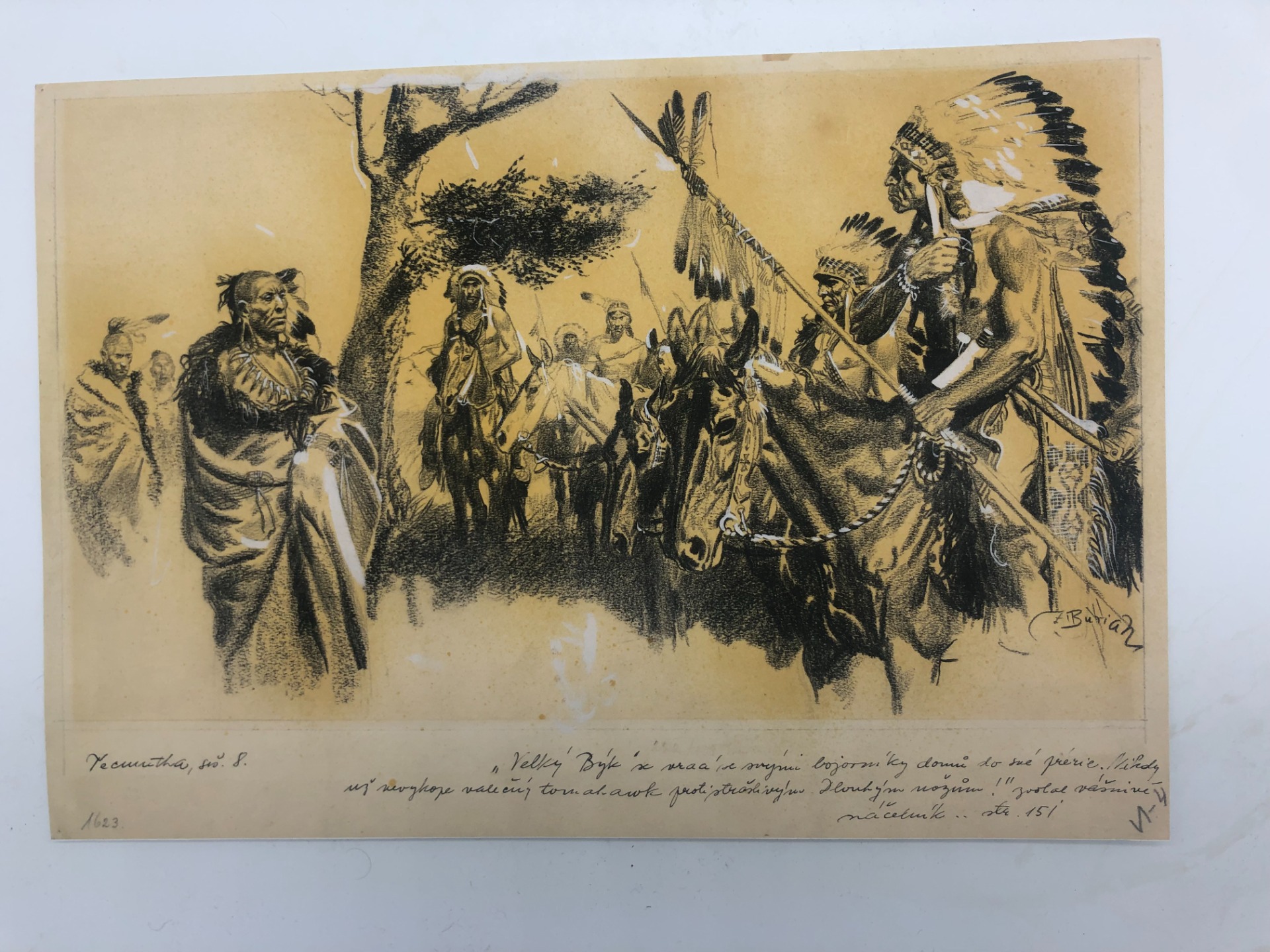 Perokresba zobrazující setkání indiánských vůdců je klasická "burianovka".